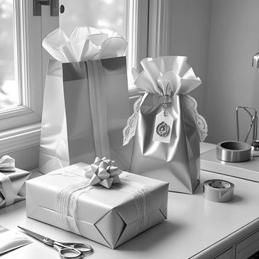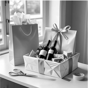 I also offer curated wrapping for gift baskets, gift bags, and special presentation boxes— you provide the items and I help styling them.